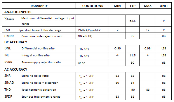Σ-Δ ADC信噪比>85dB(OSR=160时)